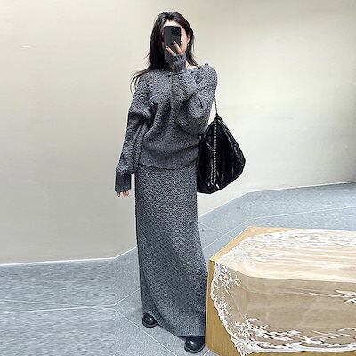 新作 おしゃれ カジュアル セットアップ レディース 秋冬 厚手 セーター ニットスカート 二点セット 百掛け 着痩せ 可愛い 百掛け