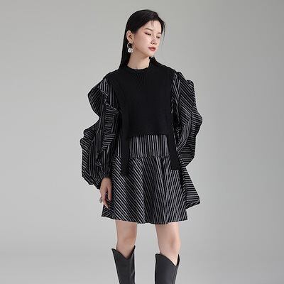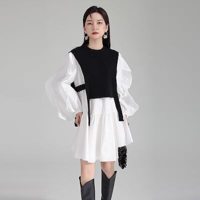 ットアップ レディース 秋冬 ニットベスト ブラウス 二点セット 百掛け セット