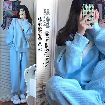 運動セットアップスウェットズボン厚手秋冬韓国ファッションレディースセットアップ裏起毛ズボンスウェット7