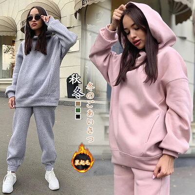 INS大人気レディース裏起毛ルームウエア 部屋着 セットアップ スウェットスーツ スエット セットアップ レディース 秋冬2点セット 長袖 無地 トレーナー ズボン 寝間着 パジャマ 女性 婦人7