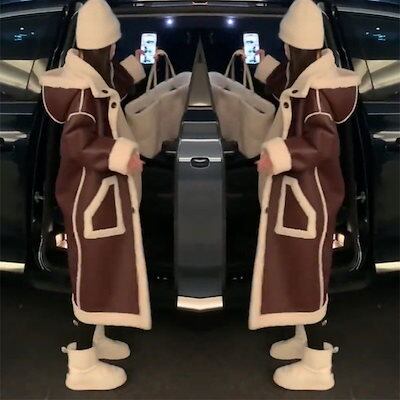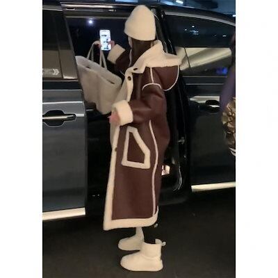ハイエンドのカスタマイズ-おしゃれなファーワンピースレディース2024秋冬新作韓国風厚みのあるミドル丈リバーシブルコート