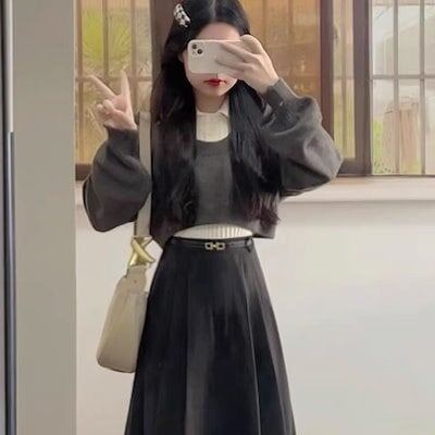 ハイエンドのカスタマイズ-秋冬レディースティースタイル衣装韓流ドラマカレッジスタイルのリッチお嬢様気質のツーピーススーツスカート一式
