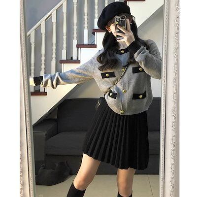 ハイエンドのカスタマイズ-秋冬新作レディーススーツ小香風セータージャケットショートスカートヘップバーン風高級小ドレス2点セット