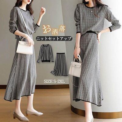 セットアップ レディース 秋と冬 きれい 長袖 ニットセット セーター スカート タイトスカート ミモレ丈 ニットソー 丸首 オシャレ オフィス 着痩せおすすめ商品