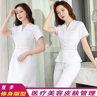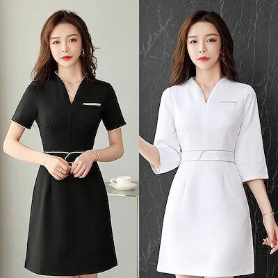 ユニフォーム エステ サロン通勤 レディース 女性 制服おしゃれ 半袖七分袖ジャケットワンピース 制服 オーバーオール ズボン セット