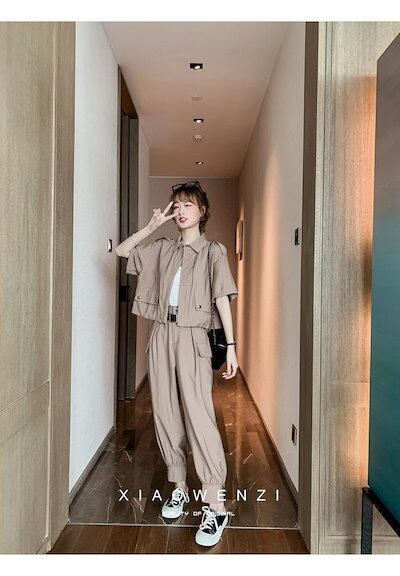トレンドデザインレディースジャケット カーゴパンツ 2点セットchicレディーススーツ 人気韓国