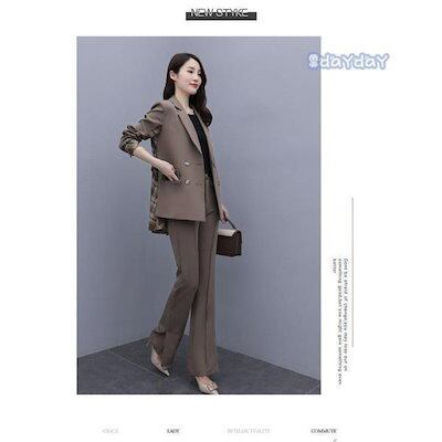 セットアップ レディース 40代 秋冬新作 長袖スーツジャケットチェック柄 ワイドパンツ 2点セット 通勤 フォーマル カジュアル オシャレ 大きいサイズ
