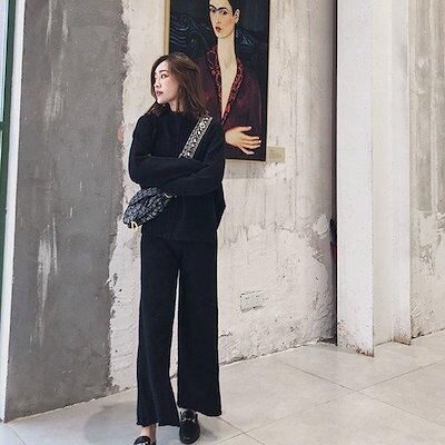 期間特典限定 ニットセットアップ レディース 40代 ゆったり ニットトップス ニット ワイドパンツ セットアップ 秋冬 無地セーター カジュアル 韓国風