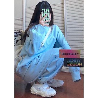 運動セットアップスウェットズボン厚手秋冬韓国ファッションレディースセットアップ裏起毛ズボンスウェット