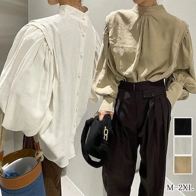 パフスリーブ秋新作上着 韓国ファッションシャツ 女性らしいデザイン 夏 tシャツ 半袖 デザイン ブラウス トップス レディース シアーシャツ