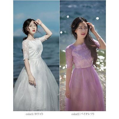 マキシワンピース リゾート レディース ハワイ ワンピース 白 Aライン ロング ビーチワンピ 半