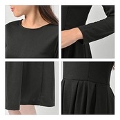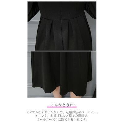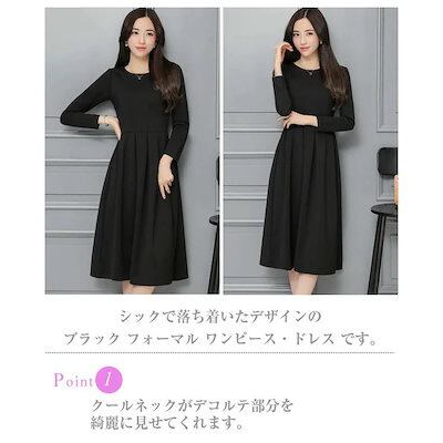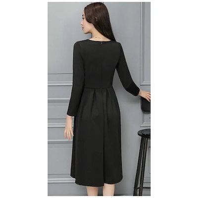 ブラック フォーマル ワンピース 喪服 礼服 きれいめ 黒 クルーネック フレア Aライン ドレス ひざ丈 長袖 代 30代 40代 50代 レディース 無