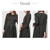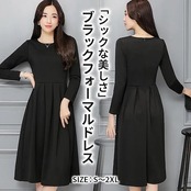 ブラック フォーマル ワンピース 喪服 礼服 きれいめ 黒 クルーネック フレア Aライン ドレス ひざ丈 長袖 代 30代 40代 50代 レディース 無福袋