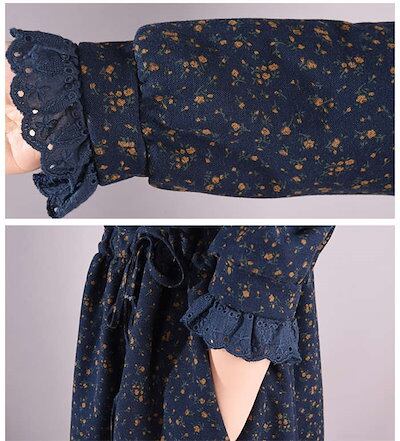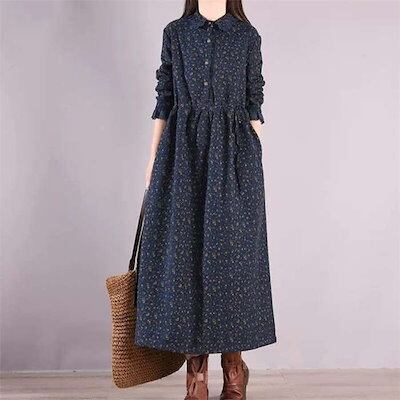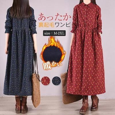 長袖 裏ボア aライン 着やせ ゆったり シャツワンピース 裏起毛 おしゃれ 体型カバー 花柄ワンピース 上品 レディース 花柄 ロングワンピース ミモレ丈 裏起毛ワンピ 大きいサイズ