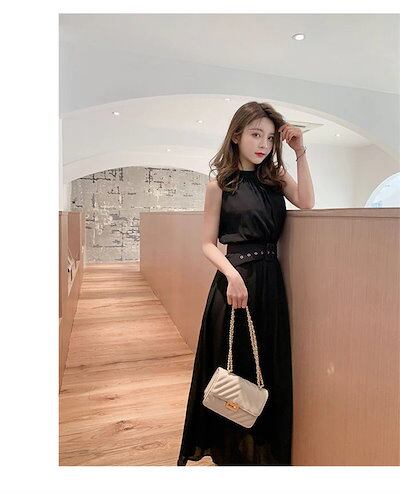 ワンピース ロングワンピース ハイウェスト マキシ丈 スーツ ワンピース ワンピ レディース ノースリーブ オフィス フォーマル ゆったり フレア ワンピース フェミニン Aライン 通勤 二次会 結婚