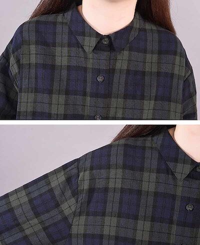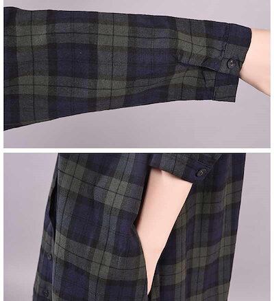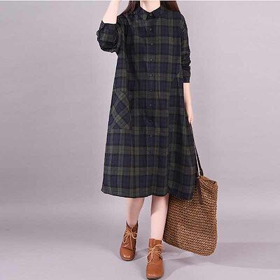 シャツワンピース チェック ロング ワンピース ロングワンピース aラインワンピース ロングシャツ 羽織り 長袖 物 ワンピース レディース チェック柄 綿麻 長袖ワンピース 体型カバー