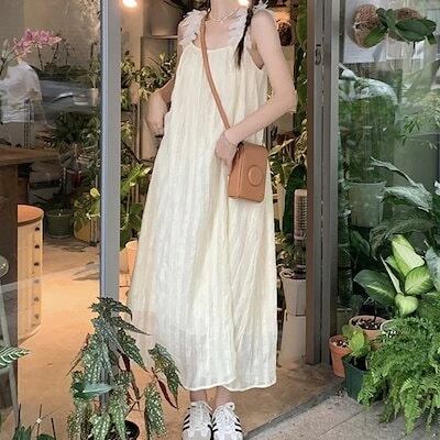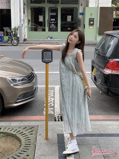 24ワンピース ミモレ丈 Aライン ノースリーブ 白 水色 青 韓国ファッション レディース おしゃれ かわいい ガーリー 甘め カジュアル お出かけ