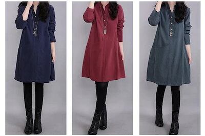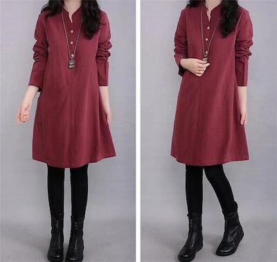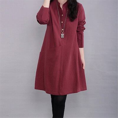 レディース ワンピース 体型カバー チュニック ニットワンピース Aライン 長袖