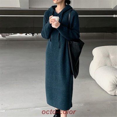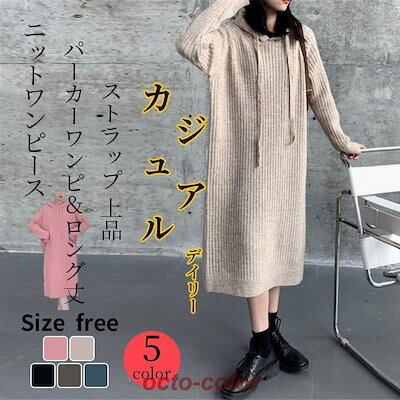 ニットワンピース レディース 40代 マキシワンピース ロングワンピ長袖 無地 セーター Aラインスカート ストラップオシャレドレス シンプル