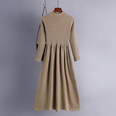 冬新作 ワンピース ニットワンピース 冬 ハイネック レディース ワンピース 膝丈 秋冬 長袖 きれいめ ハイウエスト ニット aライン 大人 春 フレア 上品 カジュアル リブニット