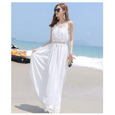 ワンピース キャミソール レディース リゾートワンピ シフォン ハワイ Aライン マキシ丈 ノースリ