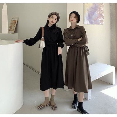 ワンピース レディース 秋 冬 秋冬 黒 ロングワンピ 長袖 マキシワンピ Aライン シャツワンピ