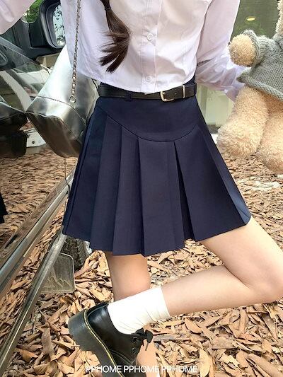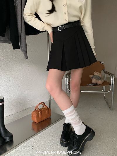 2024秋冬 スカート ミニ丈 ハイウエストベルト付き 高校生 学生 脚長効果 美脚効果 細見え かわいい風 おしゃれ キュート フレンチ 甘め カジュアル春黒白韓国系ファッションレディースお出かけ