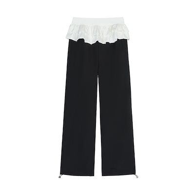2024秋冬 パンツロング丈ストレート レッグパンツウエストゴム ハイウエストゆったり 脚長効果美脚効果細見え春カジュアル 黒韓国系ファッションレディースサイドお出かけおしゃれ かわいい衣装 トラック