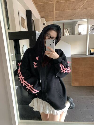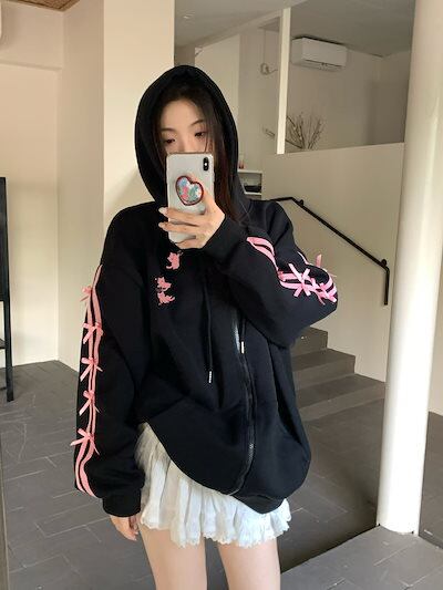 2024 秋冬 かわいい レディース フード付きアウターフーディーロゴブルゾン長袖シルエット羽織りトップスサイド冬カジュアルファッション系サイズお出かけフル丈トラック