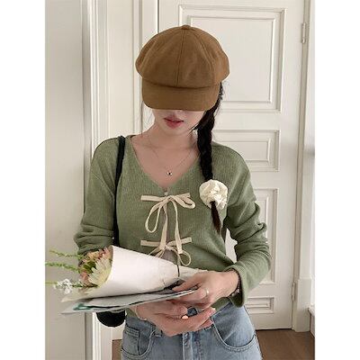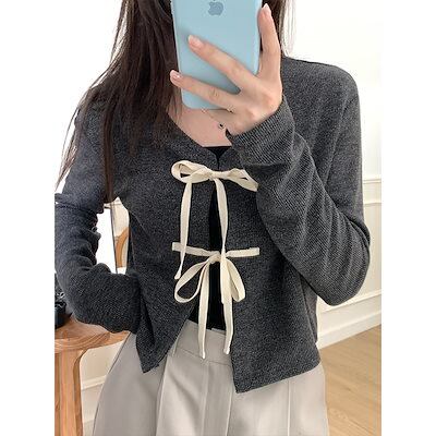 秋冬 韓国 ライトニット カーディガン トップス 羽織り加工 ショート 薄手 長袖 紫外線対策 UV対策 きれいめ オフィス OLネックカジュアルフレンチフェミニンファッション韓国 レディース