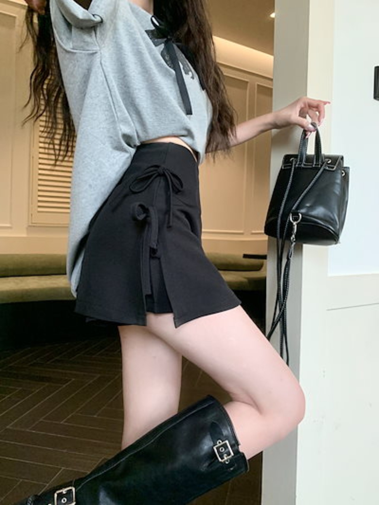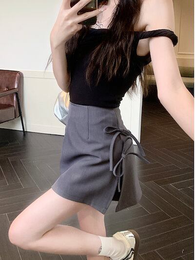 2024秋冬 スカート ミニ丈 ハイウエスト 脚長効果 美脚効果 細見え かわいい風 おしゃれ キュート フレンチ 甘め カジュアル 春 黒 白 韓国系ファッション レディース お出かけ