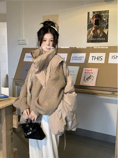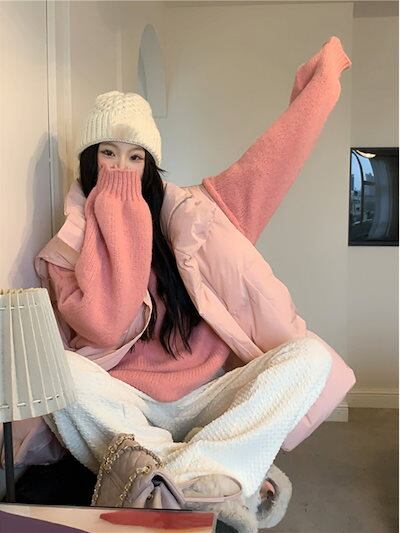 2024秋冬 暖かい 防寒 トップス ベストアウター ゆったり 丈長め カジュアル かわいいおしゃれファッションシルエット 甘め レディース ネックノースリーブ 色っぽ 女っぽ きれいめサイズ大人上品