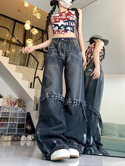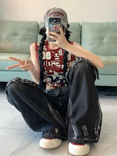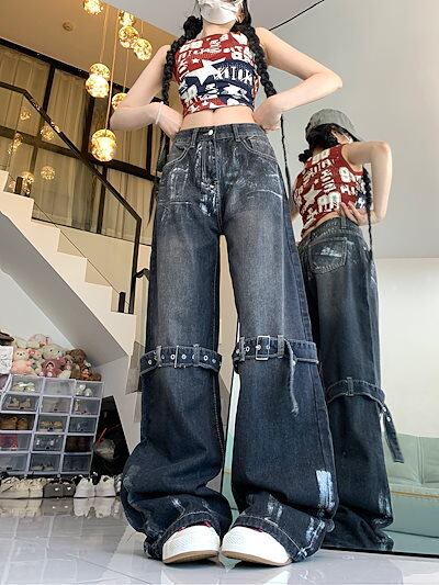 2024秋冬 デニムパンツ ボトムス ジーンズ ファッション系スタイル ゆるダボ ジーンズ ニーシルエット加工ゆったり レディース カジュアル 春夏 メンズライク