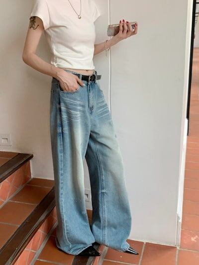 2024秋冬 デニムパンツ ボトムス ジーンズ ファッション系スタイル ゆるダボ ジーンズ シルエット加工ゆったり レディース カジュアル 春夏 メンズライク
