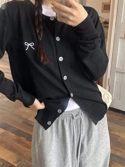 2024秋冬トップス カーディガン 羽織り 長袖 ボタン ラウンドネック 秋 黄色 緑 白 黒 青 おしゃれ かわいい 韓国ファッション レディース お出かけ