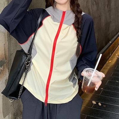 2024秋冬アウター パーカー ジップ チャック フード付き コントラスト 秋 おしゃれ かわいい 韓国ファッション レディース お出かけ