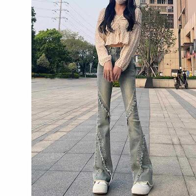 ガウチョパンツ バリ ジーパン ハイウエスト 着痩せ やせて見える ラッパズボン ワイドパンツ レディース
