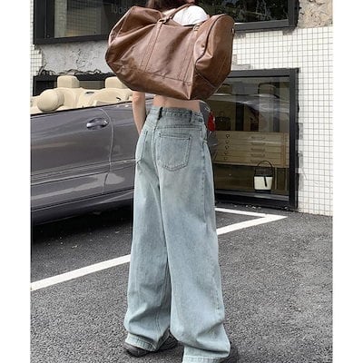 デニムパンツ レディース ジーンズタックワイドデニムパンツレディース韓国風