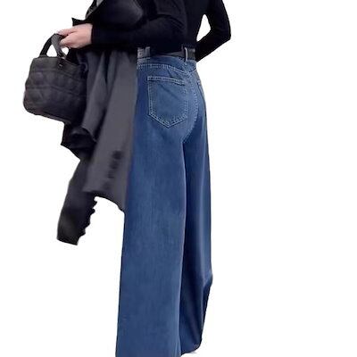 デニムパンツ レトロ ハイウエスト ワイドパンツ レディース 春秋 デザイン ローエッジ ドレープ ルーズフィット 床丈パンツ 韓国ファッション