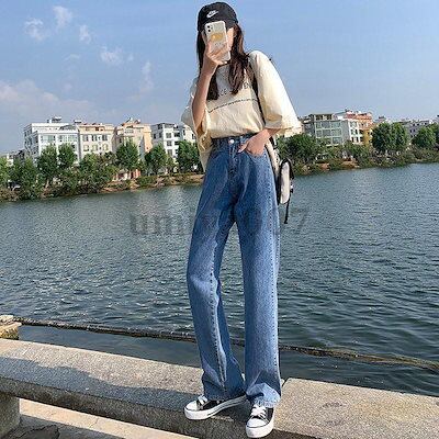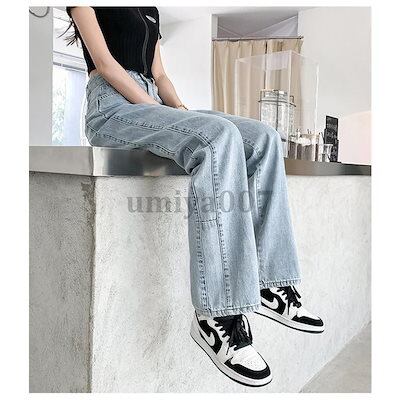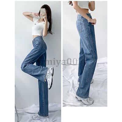 新作 デニムワイドパンツ ハイウエスト ジーンズ レディース ゆったり 韓国ファッション 美脚 ロングパンツ Gパンツ カジュアル 脚長効果