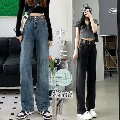 新作 ストレッチフィット ワイドデニムパンツ レディース 進化形 体型カバー ボトムス ジーパン 細身 ゆったり 韓国ファッション