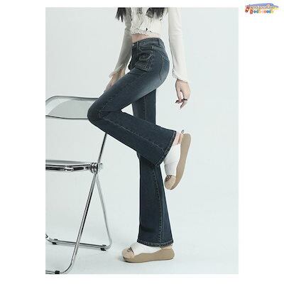 デニム パンツ レディース ボトムス 美脚 チノパン ラッパ ハイウエスト ワイドパンツ パンツ 体型カバー 秋 ジーパン 20代 30代 40代 カジュアル