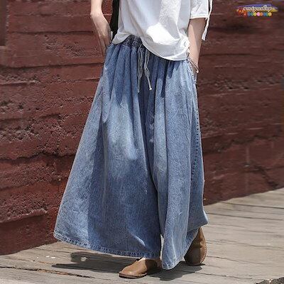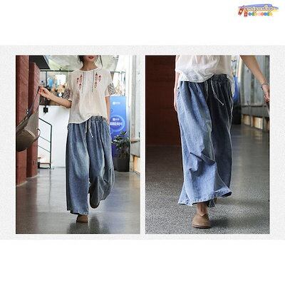 デニムパンツ パンツ スカーチョ ワイドパンツ スカンツ レディース ズボン デニム ハイウエスト 美脚 ポケット付き 無地 高級感 着痩せ 30代 40代 50代
