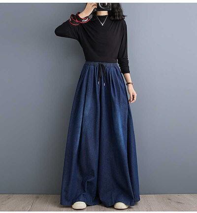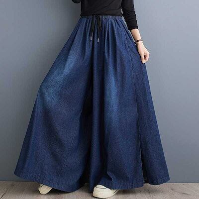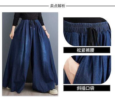 「ファットガール」 2024秋冬新品 ワイドパンツ ハイウエスト ゴム フレア スリット 大きいサイズ 体型ーカバー レディース ブーツカット ロングパンツ メガ割
