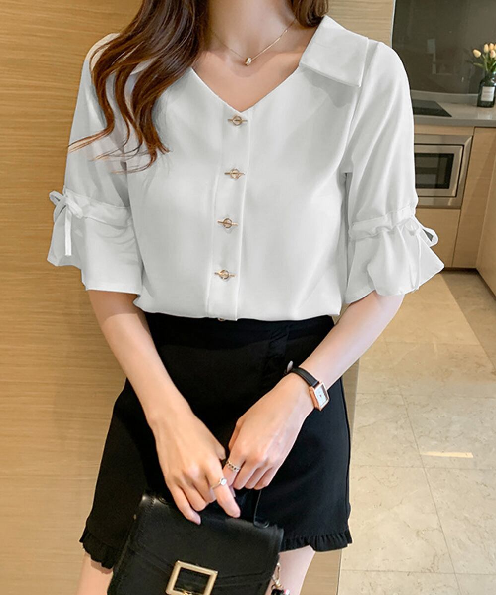 【日本倉庫即納】 ブラウス レディース ベルスリーブシャツ