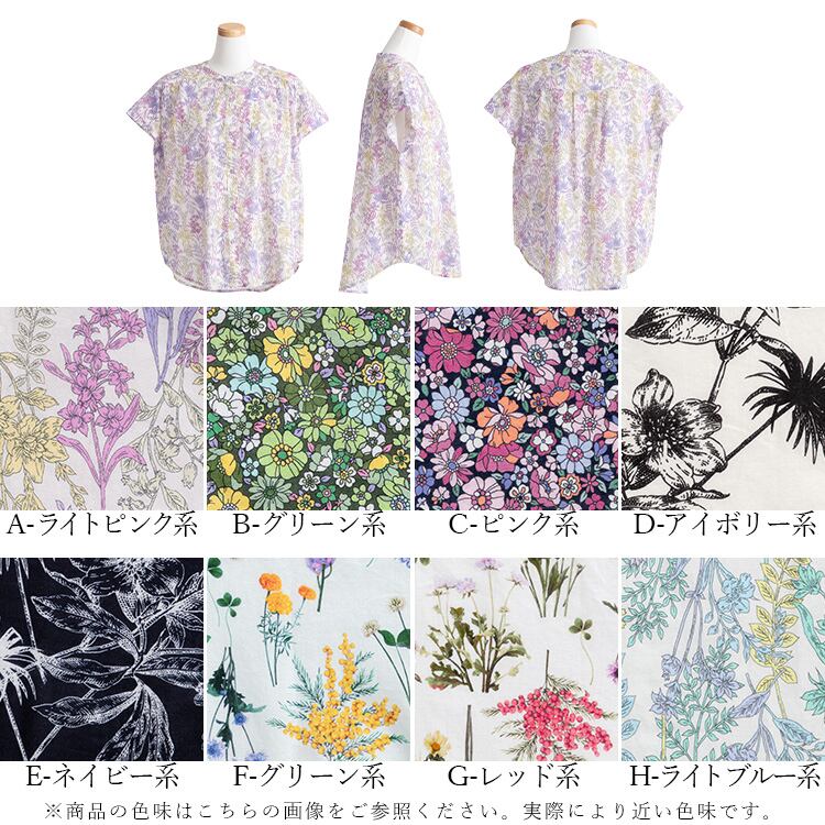 【綿100%・UV】花柄プリントブラウス コットン 天然素材 フレンチ フレンチスリーブ プリント 上品 花柄