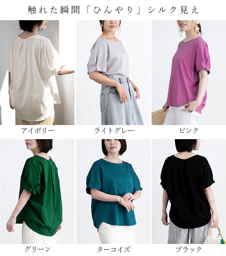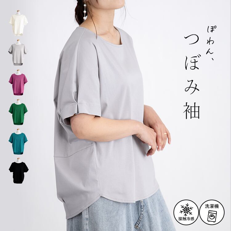 【接触冷感・綿混】なめらかカットソードルマンタックスリーブトップス