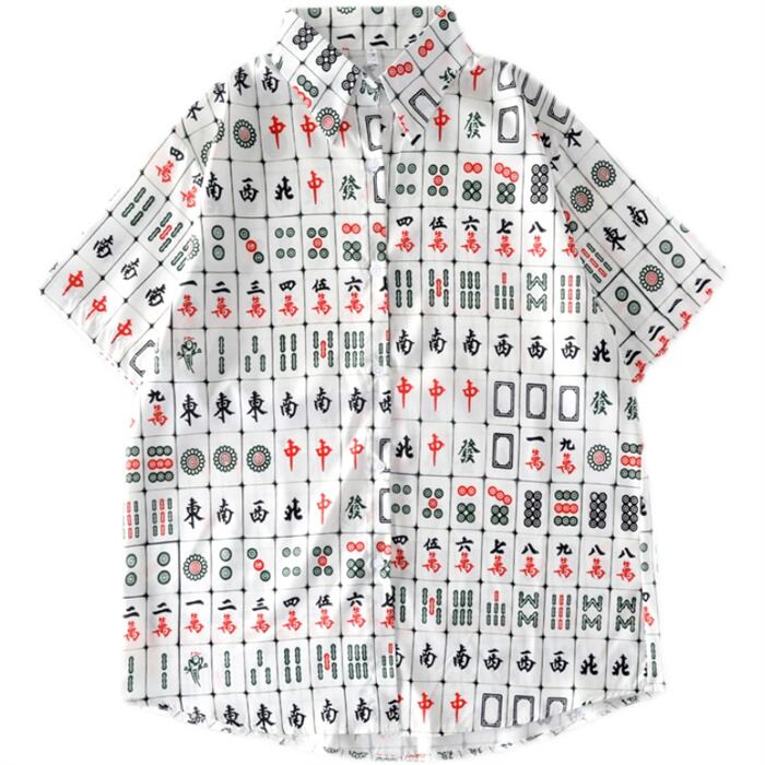 格好いいレトロ/麻雀服/シャツ/男性と女性/夏/デザインセンス/ニッチ/タイドブランド/ルーズ