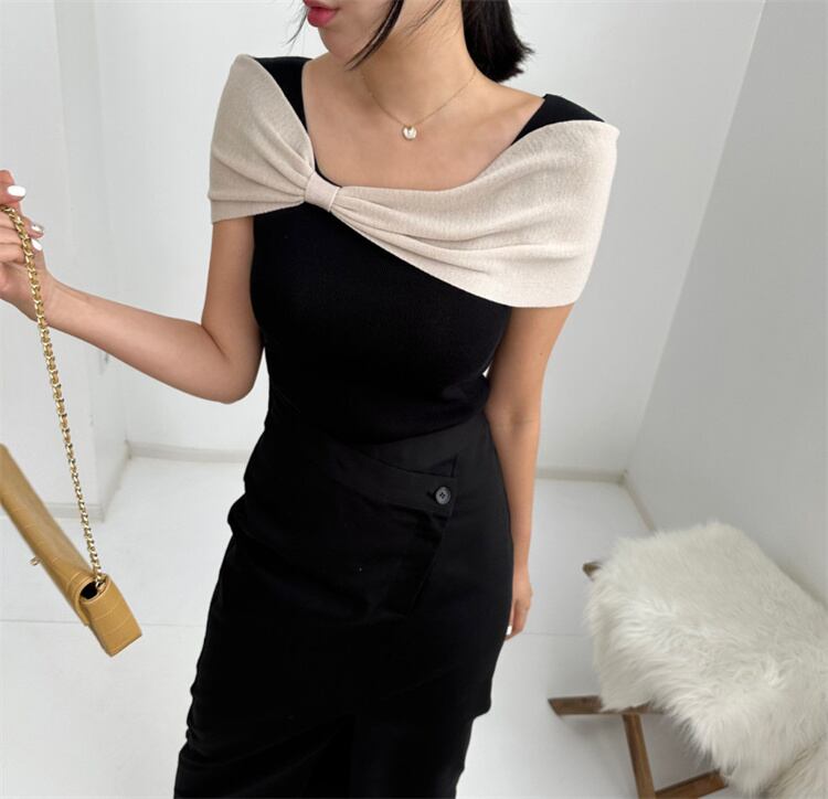 センスがいいです 早い者勝ち 一言の肩 トレンド ニットトップス 気質 上着 エレガント デザインセンス