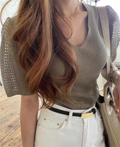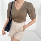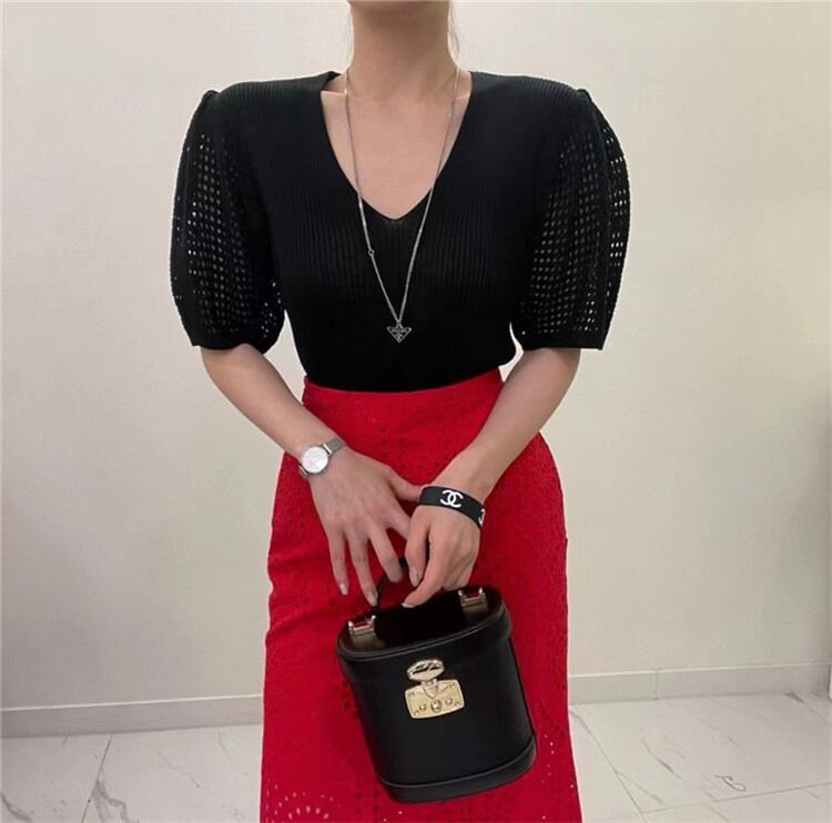 スタイルアップ効果も 激安セール 編み物 パフスリーブ 薄手 ニットトップス 快適である カットソー